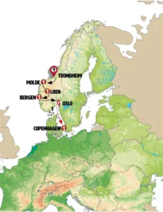 (تروندهايم- كريستيانسوند- جيرانجر- مولده- جيرانجر- بريكسدالسبرين -لوين- بيرغن-أوسلو) - 7 أيام-